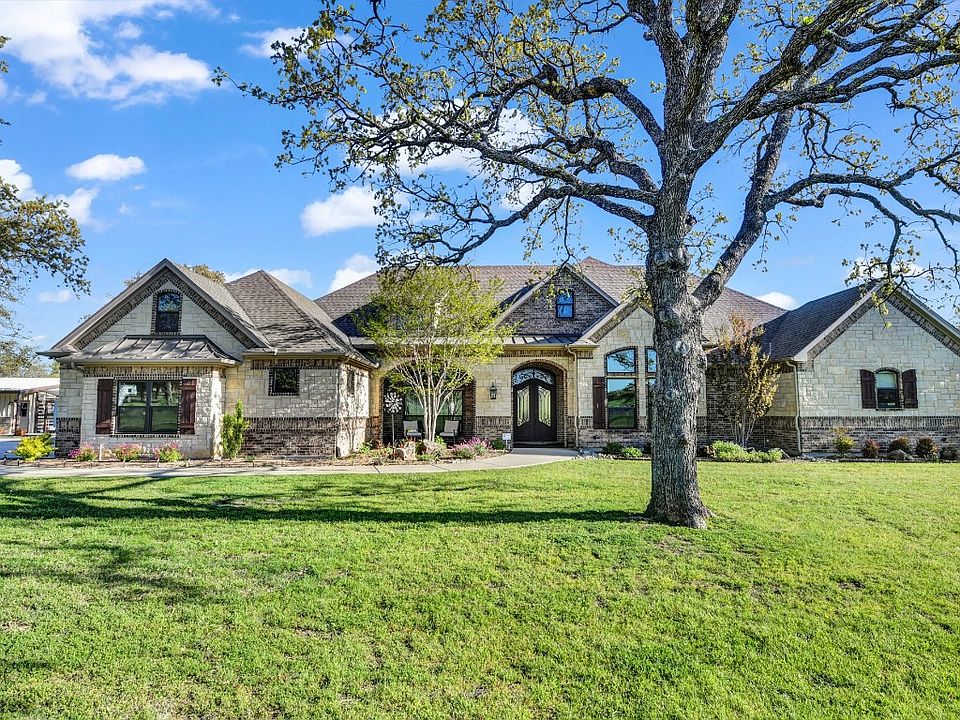 Your farm OASIS! 3956 SF home on 11 acre with thriving wildlife and landscapes. The backyard offers a peaceful escape, with an expansive large back porch that sets the stage for breath-taking sunrises and al fresco entertainment, inviting a seamless indoor-outdoor living experience. 3 BR, all with ensuite baths, plus a half bath. Primary is a private oasis, complete with large island that doubles as massage table and dresser, 2 large walk-in closets, flex room that could be an office, gym, or nursery. Door leading to patio, perfect for enjoying your morning coffee. Barn has AC office with half bath, insulated shop and carport. Loafing shed with tack room. Stocked private pond, perfect for leisurely fishing. Ag exempt. Stay prepared with a whole home generator, stocked pond, geothermal system, well, septic, green house to grow your own garden, and safe room. A true retreat for those aspiring a tranquil lifestyle and the perfect balance of convenience and serenity.