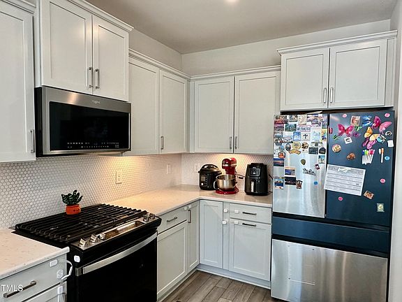 Gorgeous home in a great location. Minutes to RTP, shopping and major highways. Bright and open floor plan with tons of upgrades. Beautiful kitchen with gas cooking range, Quarts counter tops, large island and SS appliances. Large family room. LVP entire first floor. Huge master with trey ceiling, large walk in closet and shower and dual vanities. Extra large secondary bedrooms. end unit town home. fenced backyard. patio to relax. Walking trails to enjoy nature. W/D/Refrigerator. move in ready