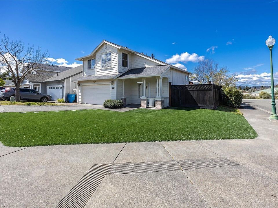 Welcome to 1401 Snowy Cloud Way nestled in the coveted Skyhawk neighborhood of Rincon Valley. This well-positioned corner lot captures unique views of the hills and the Sonoma County landscape. Bask in the scenery from the backyard, taking advantage of the splendid panorama. There is a half bath on the first floor, a gas insert fireplace, lofty vaulted ceilings, and sliders off both the family room and kitchen providing convenient access for indoor/outdoor enjoyment. The two-car garage that opens to the kitchen makes bringing in the groceries a breeze and provides plenty of extra storage space. Upstairs the primary suite provides a gorgeous long-distance vista that elevates the senses. Proximity to award-winning schools, Annadel State Park, Spring Lake, amenities, and of course - the wine country! A large gate to the side yard adds further usability to the property. Don't forget the stainless steel appliances that are included in the house. Walking paths right around the corner from the home take you to the Skyhawk Community Park and connect you to a lovely paved ravine trail that takes you to the top of Skyhawk Drive. This opportunity won't last long...