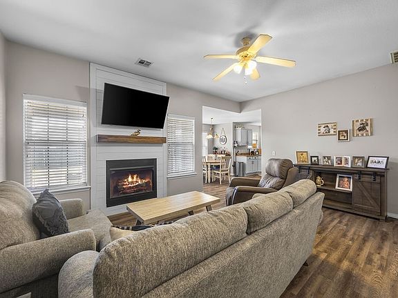 Your new home awaits in the heart of Pea Ridge! Nestled in a quiet, welcoming neighborhood within the sought-after Pea Ridge School District, this home is conveniently located near dining, shopping, entertainment, and scenic trails. This 3BR 2 BA home features custom built-ins in the laundry room and one of the bedrooms. The living room offers a cozy updated gas log fireplace and large windows that flood the space with natural light. The kitchen is very spacious with granite countertops, and ample storage space. Unwind in the private primary suite, complete with two walk-in closets, dual vanities, and a luxurious soaking tub. Step outside to enjoy the spacious, fenced-in backyard featuring a custom extended stone patio and a built-in stone grilling table. Roof is only 4 years old! Seller is offering a Choice Home Warranty plan for the new buyer as well.