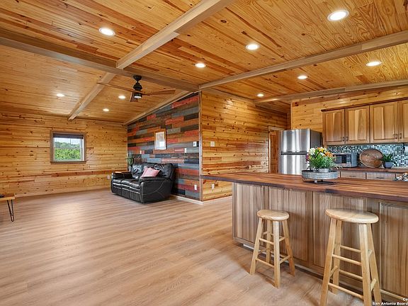 Come and get your own sweet slice of the good life in the heart of the picturesque Central Texas Hill Country. Presenting FIVE (5) Majestic Acres with an amazing Barndominium, workshop garage, and a guest studio apartment. Located in Dripping Spring's Stagecoach Ranch community, this rare square 5-acre lot is just minutes from Hamilton Pool. The main homesites on this home are vacant and ready for building your dream home. The Barndominium was built in 2016 and features a large, covered balcony with spectacular hill country views. The main living area is above the garage workshop and features a breathtaking interior with an open floor plan for the living room, kitchen, and dining area plus a full bath w/ walk-in shower, and the primary bedroom. Recently updated vinyl plank flooring runs throughout the home, which also features vaulted ceilings wrapped in wood paneling, wood-paneled walls, an intricate & colorful accent wall, updated SS appliances, and stylish modern fixtures. The impressive workshop below offers space for 1 vehicle, work benches, storage, a guest room/office, and an impressive full bath & laundry closet. The well-designed guest studio apartment features a kitchenette & full bath. The tree-filled property also includes 3 detached carports, a chicken coop, and a storage building. The main house & cottage have independent Septic Systems. Electricity & private well on the property. Short drive to all your shopping needs at the Hill Country Galleria. Nearby you will also find Reimers Ranch Park, Westcave Outdoor Discovery Center, Pedernales Falls State Park, Saddletree Ranch, Treaty Oak Distilling, Texas Hill Country Olive Co, D-Tour Aviation, Carly's Critter Camp, and more. This incredible vacation destination is surrounded by wineries and wedding venues, which are drawn to the peaceful landscape and incredible views. Excellent Dripping Springs ISD Schools. Fantastic low tax rate (1.7056 for 2022). Don't miss out on this incredible opportunity!