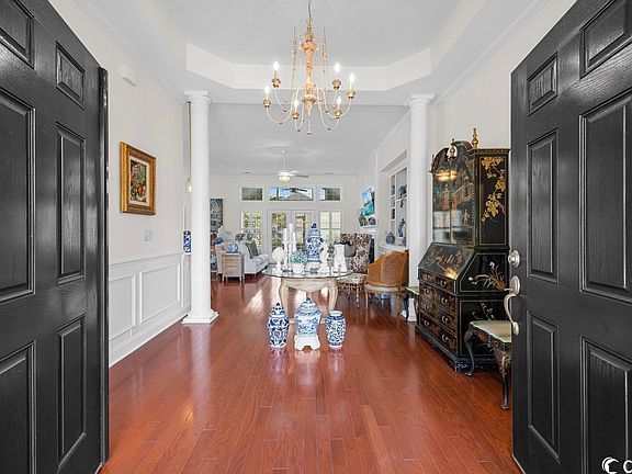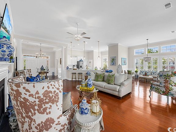 Absolutely stunning home in one of North Myrtle Beach's premier communities! Prime location, just a quick golf cart ride to the oceanfront and minutes to popular Cherry Grove Beach with tons of shopping and dining options nearby. Convenient floor plan with single level living; without stairs! Three bedrooms, two and a half baths and over two thousand square feet. Generous open concept feel with soaring ceilings throughout makes this home feel much larger. The interior of the home has been completely upgraded with new on trend finishes added. As you enter the home through the impressive front entry way, double front doors greet you for a grand feel. The foyer opens to a combined kitchen dining and living area perfect for entertaining. This home is filled with natural light from the plentiful large windows throughout and transom windows above. Custom plantation shutters have been added as well for a finished look. Freshly painted throughout in a neutral creamy white and crisp white trimwork. The kitchen has been upgraded with a large counter height peninsula bar and gleaming white cabinetry. White quartz countertops have been installed along with a decorative quatrefoil backsplash. Brushed gold hardware and fixtures have been added to accent the space. Large glass pendant lights over the bar top and stainless appliances finish off the kitchen for the perfect designer look. An eat in breakfast space allows plenty of room to gather for meals. Just off of the kitchen you'll find a laundry room and access to the side load garage. The open concept living room has built in shelving to display all of your decorative items. For those cooler days, a natural gas fireplace can be used. Want to enjoy the ocean breeze, a lovely screened porch allows you to take advantage of the wonderful coastal atmosphere. Need a space to work from home, a convenient office with french doors is just off of the living room. The detailing in this property is outstanding with plenty of mill work, crown moldings, tray ceilings and hardwood flooring throughout. New lighting with designer fixtures has been added in all living areas as well. The primary suite is privately located in the rear of the home. The en suite bath has new quart countertops and brushed gold hardware. Cabinets have been freshly painted in a bright white. Dual sinks vanities, garden tub and walk in shower finish off this well appointed suite. A large walk in closet provides plenty of storage space. Two secondary bedrooms are located at the front of the home serviced by a hall bathroom. Both have a spacious feel with plenty of light and large closets. The hall bathroom has been equally upgraded with new quartz countertops, brushed gold fixtures, painted cabinetry and new lighting and fixtures. Outside, the home is well situated on a oversized corner lot. Stucco exterior in a beautiful neutral creamy ivory and a well landscaped lawn makes this home a standout with curb appeal. Seabrook Plantation is a gated community with a well maintained appearance throughout and lovely amenities. Convenient access to all of North Myrtle Beach and closely situated to the new Coastal Towne Center. Don't miss this fantastic home and schedule your showing today. All information is deemed reliable, buyer is responsible for all verification.