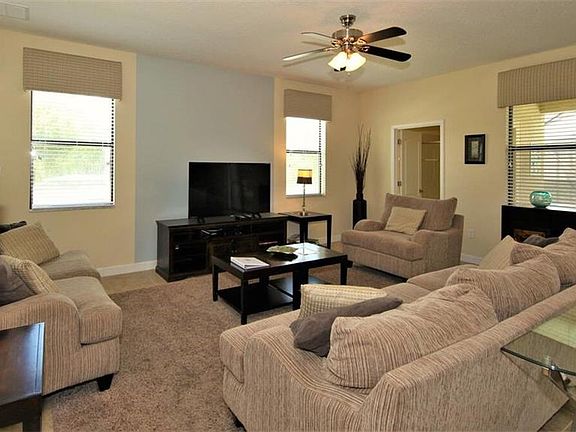 Move-In Early!! before November 15th. And Take Advantage of First Month Half Rent Half OFF !! Enjoy this beautiful and Spacious 2-Story "FURNISHED" Pool Home! 6 bedrooms and 6 bathrooms provide ample space to enjoy this property full time. The downstairs layout includes 2 secondary bedrooms each with a private full bath, 1 full guest bath that connects with the outdoor pool area, interior laundry room, and common areas to include living room(Sofa set will not come with rental), dining room, and kitchen with granite countertops and breakfast bar. The upstairs layout includes a loft, master suite with a master bath featuring dual sinks and separate garden tub/shower, 3 secondary bedrooms, and 2 full baths. The common areas and bathrooms feature tile flooring for convenience, and the loft and all bedrooms are carpeted for comfort. Downstairs, slider doors exit out onto a shaded porch overlooking a pool/spa, all screen-enclosed with pool deck pavers installed. Home is set on a corner lot just a short distance from the community's resort-style recreation area. Lawn Care, Basic Cable, phone & Internet Included. This home is located at Stoney Brook at Champions Gate. Community features state of the art clubhouse, Fitness Center, Resort-style swimming pool, gated community. Just minutes away from Walt Disney World, the Omni Hotel and Resort, International Drive, and I-4, where residents and visitors can play, eat and shop all within minutes from their doorstep. Move-In by November 15th. Take advantage of 50% off from the first-month rent.