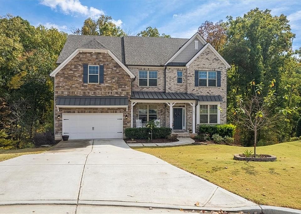 Nestled in the top rated Mill Creek school district, this Brick & Stone Front Beauty with 5 bedrooms and 4 full bathrooms within a quiet cul-de-sac is waiting for you to call HOME! Like-new and meticulously maintained by the original owners. Upon entry from the rocking chair front porch, an open formal dining and sitting room with built-in shelves and custom window nook greet you and your guests! Step further into the airy & spacious layout into the two-story great room with plenty of bright windows and cozy up next to the ceiling high, stacked-stone fireplace. For the modern chef, the gourmet kitchen is adorned with white cabinets, granite countertops, entertainer's island with breakfast bar and eat-in area, walk-in pantry and easy access to the extended large deck with added gas line to grill out on a nice sunny day! Enjoy the private wooded views and serene sounds of nature. Relax on the bottom deck that extends from the unfinished full basement - just waiting for your custom touch for additional living area or an entertainment space! Guest bedroom and full bathroom on the main level is located next to the open mud-room which leads out to the two-car garage. The upper level offers 4 bedrooms including an ensuite bathroom and Jack and Jill layout. Oversized owner's suite with a beautiful bathroom equipped with a tiled shower, separate soaking tub, separate his & hers closet and double vanity. This amazing home has so much space for you and your family with plenty of room for entertaining guests! Don't miss the opportunity to live in this prestigious community with a swimming pool, clubhouse, playground & tennis courts and just minutes away from shopping, restaurants, schools, I-85, parks, and much more!