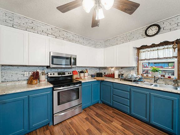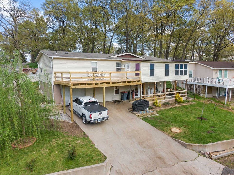 Come enjoy this quiet neighborhood Grove OK home with nice lake view across street and optional waterfront boat ramp and picnic area/place to kayak and have fun for $160 a yr dues.Home is 2 level with 3 bedrooms/2 baths on main level with kitchen, dining, living, and a large enclosed porch with beautiful cedar wood walls and just out side this room is a new outdoor deck to enjoy the view from. Lower level has 4th bed/1 bath with second living area. Also a one car garage with large storage or workshop area much larger than the car space. You will enjoy lake living here. Storage shed and covered parking outside upper level. Great home for 2 generations to share. VRBO possibilities with city permit. Bolt High Speed Internet & TV available here. Come take a look.