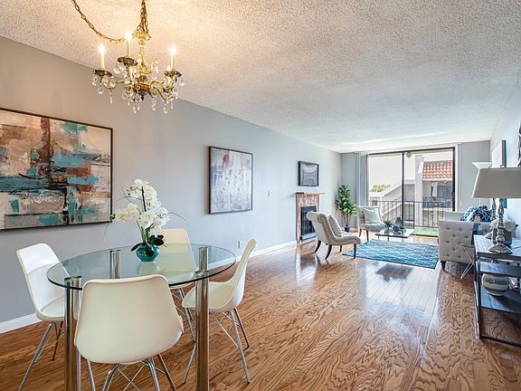 The perfect opportunity for a spacious 1-bedroom, 1-bathroom condo in Glendale chockfull of great amenities at Casa De Valley View! Located on the top floor of the complex, welcome to a bright airy living and dining room space that includes beautiful wood designed laminate floors, a dainty chandelier over the dining area, a private balcony overlooking the community spaces, and a glossy decorative fireplace, create a pleasing ambiance for any entertaining or a comfy night in. The crisp lines of the kitchen offer neat countertops, plenty of built-in cabinet storage, and built-in appliances, creating streamline functionality for all your culinary creations. With chestnut toned laminate floors, a spacious walk in closet with built-in adjustable shelving, and a large window in the bedroom, the SoCal sunshine washes the room with warmth. A split bathroom includes a spacious vanity top and additional storage. The complex includes multiple outdoor patio spaces, a serene pool, an indoor multipurpose/recreation room, and a bright lobby which has additional indoor seating spaces and the community mailbox. Nearby Fremont Park, Trader Joe's, Vons, The Americana at Brand, local cafes & more!