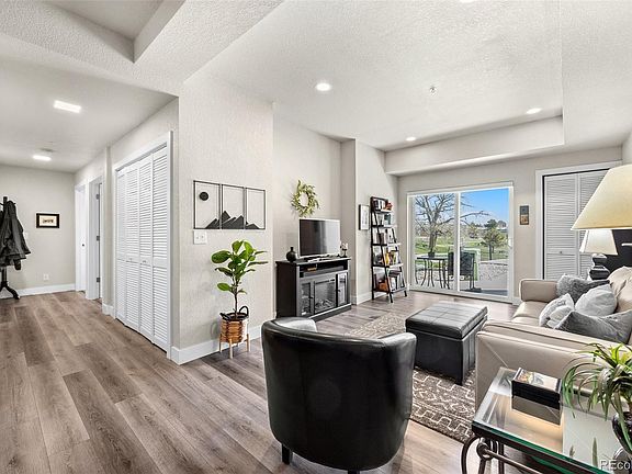 Welcome home to a modern and convenient living space with great nearby amenities and beautiful views out every window. This two bedroom and two bathroom condo provides ample living space for occupants, while the corner unit location and entrance on the main level ensure privacy and ease of access. The gas cooktop in the kitchen is a desirable feature for many home chefs. The upgraded quartz countertops are not only durable but also add a touch of elegance to the space. The newer stainless steel appliances include a built in microwave, dishwasher, cooktop and oven, and refrigerator. The sliding glass door in the living room adds to the beauty of the space by letting in natural light and providing great views of the nearby park. The in unit washer and dryer adds convenience for owners and the hallway closet provides additional storage. The walk-in closet in the primary bedroom and the absence of stairs make the condo particularly appealing. The new luxury vinyl plank flooring adds a touch of luxury throughout the living space. The two full bathrooms each with a tub with tile surround is a great feature for residents who enjoy soaking in a bath. Finally, the location of the condo near Bell Roth park, trails and playground and Camenisch Park, Hyland Hills Sports complex provides easy access to outdoor activities and recreation, making it an ideal home for those who love to have the outdoors just minutes from their front door.