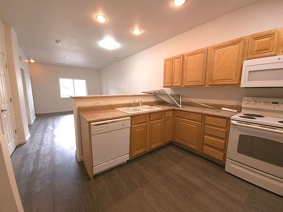 South facing balconyElectric rangeWalk in pantryVaulted ceilingsStackable washer and dryerOverhead microwaveNew carpeted bedrooms