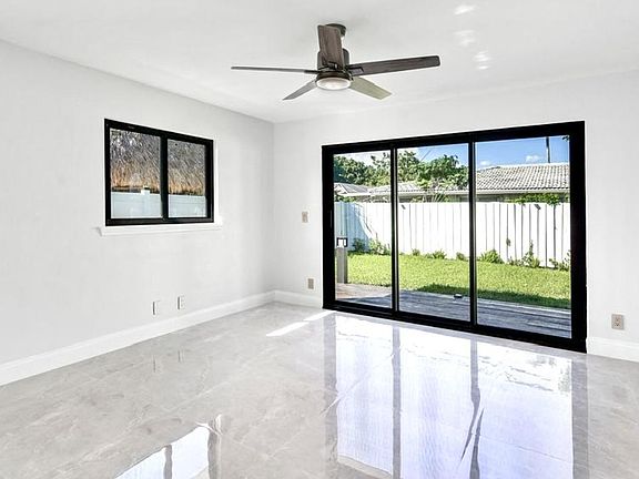 FULLY REMODELED HOME in East Boca! Everything is new: roof, high-end Impact windows, doors, 2 zone A/C, water heater, ALL appliances, cabinets, floors, lights, fans, and vanities. Enjoy custom-designed European kitchen with butcher block wide countertop and plenty of storage. 4 BR ; 2 full BA ; 2333 Sq ft with polished tile floors, open split floor plan and spacious garage with built-in shelves. Great outdoor entertaining space for your guests with a BBQ area and deck. Walking distance to A+ rated schools, minutes from Mizner Park, Town Center Mall and beach. No HOA, great neighborhood. Move in ready! Apply today Tenant pays for utility bills. No smoking allowed. Thank you for understanding.