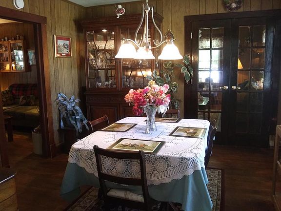 Corner lot in town of Crewe. House sits on 2 lots. Nicely landscaped yard with plenty of shade, fenced back yard with shed. Deck for relaxing! Detached one car garage w/electric. Charming house has 3 bedrooms. comfortable living room with French doors leading into dining room. Galley style kitchen has been upgraded; all appliances convey. Washer/dryer conveniently located on main floor. Partial unfinished basement for furnace & hot water heater. Replacement windows.