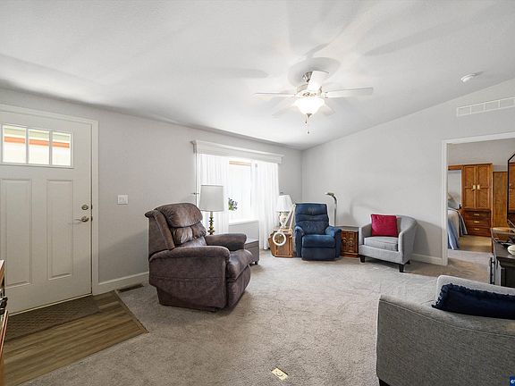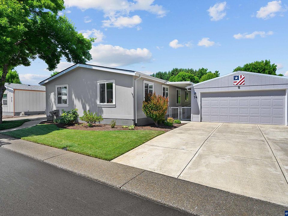 Rare 4 bedroom newer Manufactured home at sought out 55+ Park in Dallas. Enjoy all the natural light with the custom added windows. The large kitchen has quartz counter top, pull out cabinets and soft close doors. Vinyl planks in the main areas and carpet in the living room and bedrooms. The house offers a no step garage with room for shop or storage, and a ramp to the door. easy access to the back yard, with UGS. Buyers must be park approved.
