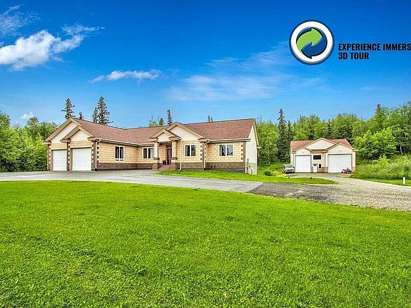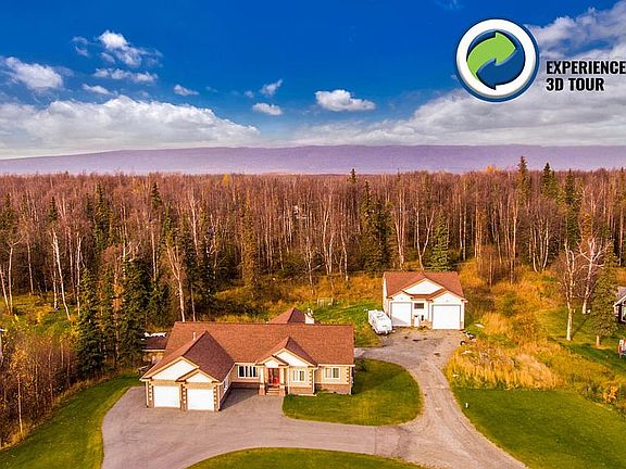 3D Immersive Virtual Tour available! Luxurious home with phenomenal garage/shop & mother-in-law spaces. Situated on nearly 2 acres & less than a mile from Parks Hwy, it's the perfect location. Throughout the home you'll find features such as a built-in entertainment center & 12'ceilings in the living room. Hearthstone brand soapstone stove with a closet for wood, full kitchen & sauna in MIL area.. Stunning quartz and granite counters throughout. The home has a two car attached garage with 10x8 doors in the front of the home, and an attached oversized one car garage in the back. The massive heated shop has a full bathroom, an office space with two large doors. One shop door is 16x14 and the other 12x14, both with automatic openers and parks at least 8 cars.Enstar average $229 per month, low $70MEA average $255, low $203