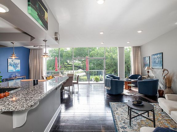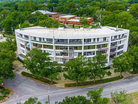 Enjoy breakfast overlooking the Little Arkansas River in one of Wichita's most iconic buildings, The River View. Tastefully remodeled with a contemporary vibe. Expansive floor to ceiling windows offering east river view and western exposure too. Large rooms offer an open and unique feel with nine-foot ceilings. Primary bedroom has boutique hotel vibe featuring cork flooring. Second bedroom well suited as a den/office. Two large bathrooms, lots of storage, and a dream laundry room. Kitchen complete with appliances, granite counters, and a walk-in pantry. Riverside neighborhood, easy walking distance to Wichita Art Museum, Botanica, Oak Park, Sims Park. HOA dues cover heating, air conditioning, water, instant hot water, trash & recycling, building maintenance and insurance, and reserve fund. You can entertain in the penthouse level party room (called the River Room) and it can accommodate everything from a book club to a large family gathering! There are guest rooms on the 2nd, 3rd, and 4th floor that you can reserve for your overnight guests. If you are looking for the ease and luxury of condo life this one is for you! condo highlights: Sitting on the balcony watching the egrets, rowers, and the river rolling by. Spacious open floor plan with high ceilings and a wall of outdoor light. Fifth floor community room with large outdoor deck. Three guest rooms available for nightly rentals.