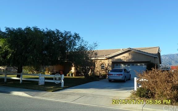 This beautiful ranch style home was built in 2005. Situated on a half acre lot and zoned for horses. The concrete driveway extends beyond the side gates into the rear yard and provides RV parking. The split floor plan is great for those with a roommate, caregiver or live in housekeeper. Large country kitchen has plenty of room for everyone and everything. The formal living room is open to the family room and kitchen area. Beautiful wood floors complete the interior package. The rear yard features two large covered patios, a lawn area, a storage barn and room for the horses too.
