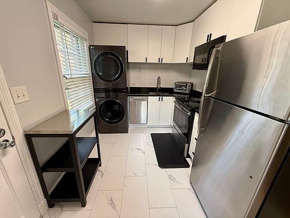Central heating & air, off-street parking and shared backyard. Stackable washer/dryer provided in the kitchen. Tenant is responsible for all utilities (electric/water/gas).