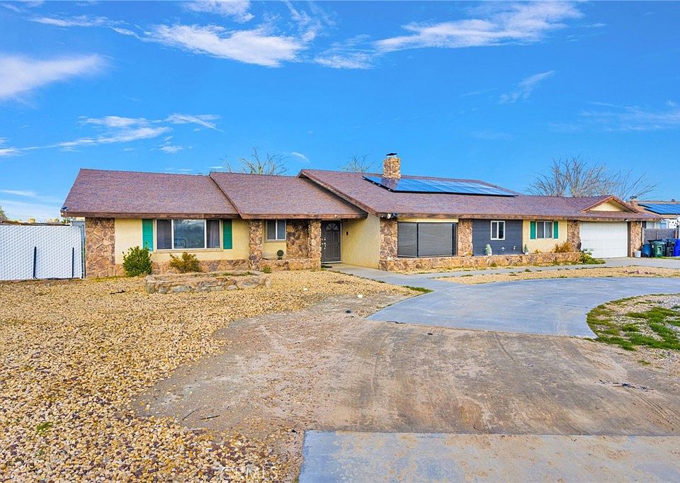 Welcome to this spacious single-story home in the desirable Apple Valley Ranchos community! Situated on a full 1-acre (43,400 sq ft) lot, this charming residence offers 2,384 sq ft of living space featuring 3 bedrooms and 2 bathrooms. The home boasts a classic modern style, a large living room with a cozy fireplace, and an open floor plan that’s perfect for both relaxing and entertaining. Enjoy the convenience of an attached 2-car garage and central heating and air conditioning for year-round comfort. Includes a bonus room! Solar is paid off.