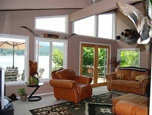 Hard to find lake front with home close to the water. Price incudes two water front lots totaling 137 ft of waterfront. New kitchen with granite counters. Valuted ceiling, two gas propane fireplaces, wrap around deck, hot tub. Dock with boat slip and two jet ski sleds. Separate 3 car garage & shop. Price reduced $190,000 Now in a Short Sale. All offers considered for presentation to the bank.