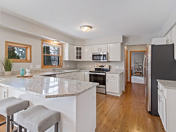 Totally move-in ready Colonial close to Eisenhower Elementary School. Enjoy a bright & cheery interior that boasts so many updates like freshly painted interior and exterior, all new carpet, refinished HWFs, painted kitchen cabs with new granite, BB & new SS appliances. Warm up next to the GFP in LR & enjoy special dinners in FDR. Main flr office/den. Master Suite features vaulted ceiling, walk-in closet & newly remodeled full bath w/new walk-in shower and granite-topped double sink vanity. Loft area large enough for desk or reading chair. 2 more upper bedrooms share newly renovated full bath. Clean basement ready for you to finish. Drywalled GA. Exterior boasts stamped concrete patio, mature trees and extra parking space at side of GA. Approx ages: roof 5 yrs, AC 1 yr, Furnace 6 yrs.