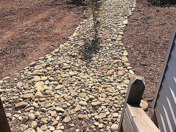 One level. Master suite with en suite (spa bathroom). Screened porch. Woods with walkways.