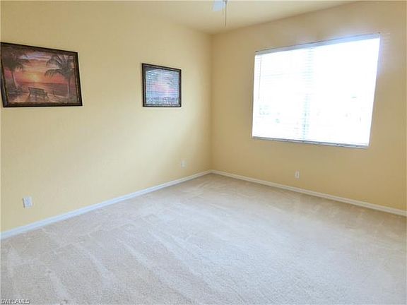 It is a WOW! 3 bedroom plus den(could be a 4 bedroom-add a closet) with very open floorplan and best waterfront view in neighborhood. Its a great gated neighborhood with community pool and monthly fees only $90/month. Home has tile on diagonal and upgraded appliances. Beautiful furniture could be available separately.