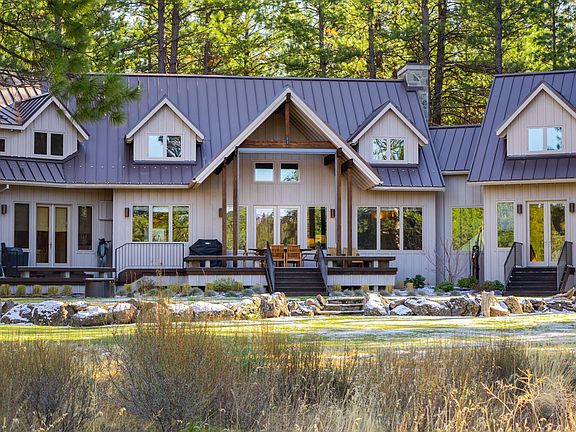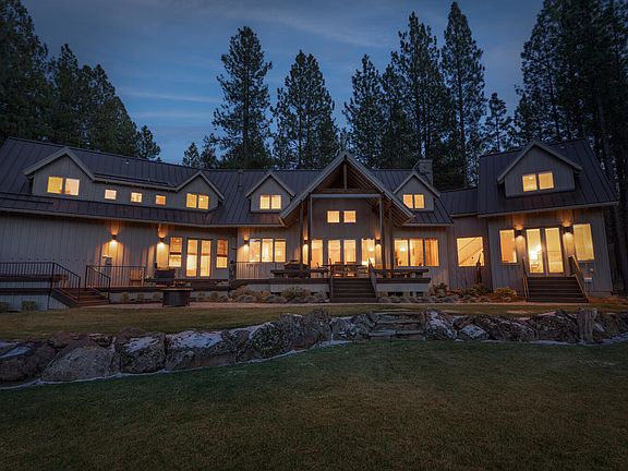 Serenely located aside Glaze Meadow & Heron Lake, this beautiful Northwest inspired home, delivers custom design w/both privacy & entertaining in mind. This 5 bedroom, 5 1/2 bath home presents numerous options for those peaceful days/nights at the ranch. The great room centers the home w/large cathedral ceilings, picturesque windows, modern angle design, exposed beams, and floor-to-ceiling stone fireplace. The primary bedroom is located on the main floor & includes a spa-like bathroom, complete with European-style cabinets & heated tile floor. An entertainers kitchen invites for large or quant parties, family gatherings, or just a chef's space w/an adjacent butlers pantry. Upstairs provides space on both ends of the home w/ two private bedrooms en- suites, a large & open bonus room, and two chic bunk-style rooms. The outdoor living space