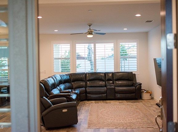 Now is the perfect opportunity to own a Seven Oaks, Highgate~Square home! This single story 3-bedroom, 2 bath ''Bedford'' home was built in 2019 & has been thoughtfully upgraded. From the moment you see the property, you'll appreciate the well-manicured front yard, exterior lighting at night, and welcoming entry. Just inside the home, you'll enjoy the open-concept living area, outstanding kitchen with island & dining area, including additional recessed lighting in the main living area. Wood-tone luxury vinyl flooring is used extensively in the home with carpeting in each of the 3 bedrooms. In the kitchen you'll notice the white, shaker-style cabinetry, upgraded quartz counters, custom backsplash, & farm-style sink. The master bathroom has upgraded rectangular double sinks & subway tile surround in the shower & tub. Each of the 2 bathrooms have upgraded quartz counters & backsplash as well. Plantation shutters & ceiling fans in the main living area & each of the 3 bedrooms are also included. The perfect extension of this well-planned home is the expanded back yard patio/cover/sidewalk & the professionally landscaped yard. Other value-added features include the expanded Tesla solar panels (lease has been pre-paid for 20 years), tank-less water heater, Tesla car-charging station located in the garage, energy-efficient appliances, windows, & doors. While this home is certainly meant to be enjoyed, being part of the Seven Oaks~Highgate community includes a clubhouse, pool, sport court, fitness center, outdoor bar-b-que, & security gates that bring added assurance. This property is a wise-investment for years to come!