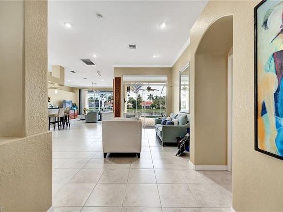 Only home in the neighborhood, with same floor plan, that has a completely open concept floor plan allowing unvetted views to the lake. Dry bar has marble top and white crystal backsplash that incorporates the window allowing access to lanai for food and drink service Except for the dry bar, all cabinet's are solid maple faces. Most homes are thermofoil MDF faces. Master bathroom has travertine floor and wall tile.