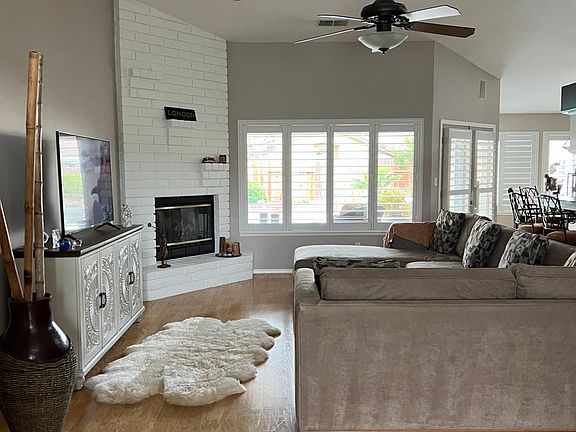One owner home. Split wing plan. Large living area. Very large main bedroom with fireplace between bedroom and bathroom. Main bathroom has been extensively remodeled within the last 3 years--freestanding bathtub, shower, vanity and barn door. Newer windows in main bathroom. Plantation shutters on all windows. Newer back fence. Bedroom two is very large. Bedroom carpet installed within the last 3 years. All rooms have been painted within two years. Swimming pool. Barbeque in back yard. Grass area and large side yard. Large covered patio. Seller will leave large landscaping pots with property. 3 car garage with two garage door openers. Front door is being refinished.