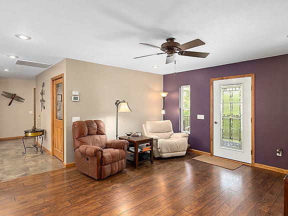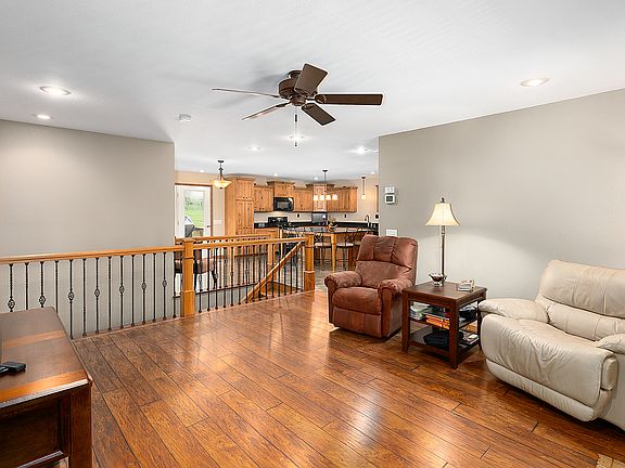 Let the fresh air and the sights and sounds of the great outdoors surround you This picture perfect 3 bd. country home is surrounded by nature's best with deer & wildlife in the backyard- featuring: the finest in indoor & outdoor living with a breezy front porch that opens to an impressive open floor plan; an extraordinary kitchen/ dining combo that's large enough for entertaining with 44' of Knotty Alder cabinets, a 7' X 5' island & pantry with soft close hardware & pull out drawers, all nicely enhanced with crown molding, rubbed bronze hardware, beautiful granite counter tops & black appliances; French doors in the dining area allows family & guest access to the 24 x 13' backyard deck, making it handy for backyard barbecues; the master suite includes an attractive bath offering his & her vanities, a soaker tub & a walk in shower with surrounding ceramic tile, plus a large walk-in closet with his & her built in cabinets & drawers; pocket doors separate the handy laundry with a front load washer & dryer + plenty of cabinets for storage; and the Fireman's office is unique with a Tin-plate ceiling & an original brass fire pole that drops into the family gathering area. The entry off the garage includes a built in coat rack & a handy half bath. A wrought iron open staircase leads to the lower family gathering area, featuring a 7' kitchenette & French doors that allows access to an enjoyable 47' x 8 covered patio. Two extra bedrooms, a full bath & a 25' x 12' storage area are also located in the lower level. And- for all your toys- a heated Longhorn 48' x 36 out- building with a full bath & 20-amp outlet for a camper. Experience the finest indoor & outdoor living, call your realtor today! Extra features include: Geothermal heat & air with an electronic air filter, humidifier & black-light air purifier, two 50-gal hot water heaters, a water softener sys., central vac, hard wired smoke & CO2 detectors.