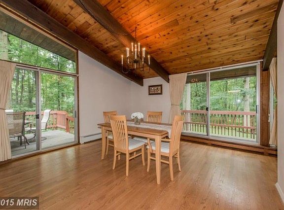 Beautifully maintained deck house is a rare find, perfectly set on a 1+ acre lot! Bright and open spaces feature rich details; mahogany trim, hardwood floors, 12 ft vaulted cedar cathedrals & large windows framing private wooded views! Upgraded kitchen boasts new stainless steel appliances w/access to two expansive decks and patio, perfect for entertaining! Main floor owner's suite. A must see!