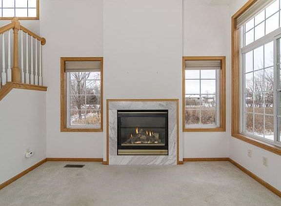 Best location in the development, very private. Serene patio overlooking preserve/ wetland area. Two story living room w/ gas fireplace. Bright exposures w/ natural light. Loft overlooks Living room, Large center island in Kitchen. FHA approved Assn.