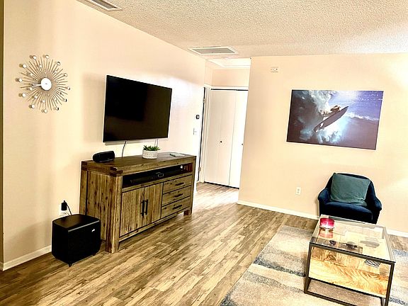 Fully Furnished 1 Bedroom, less than a mile to the beach. Lots of amenities and walking distance to shopping. End unit, lots of light - spacious rooms. Comes with one assigned parking spot (Covered) 6 mos lease. Credit check is required. Utilities are extra range $40-$120 depending on usage (AC and Heat are electric). Internet can be included ($70 per month extra) Water and trash is approx $60 per month