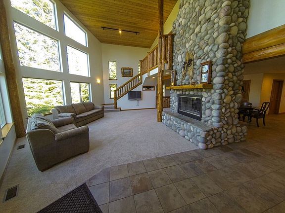 Super-efficient Log Sided Geo Thermal heat and cooling. On Paved road w/ 6.89 groomed pasture ready acres,40x60 shop w/12x60 overhang & Water,700 sq ft master with lg walk- in closet,Complete mother- in- law set up.Artesian spring feeds a year-round trout pond.6 miles to Rockford Bay/Lake Coeur d Alene,25 min to Coeur d Alene or Spokane Valley, 30 min to Spokane South Hill, 45 min to Spokane Airport. 700 sq ft master with lg walk- in closet. Basement level is open on 3 sides has a garage