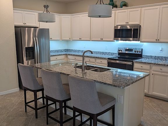 Lawn care and HOA fees already included in rent. Enjoy all the community amenities ALL WITHIN 3 MINUTE WALK, including a clubhouse, community pool, gym, yoga/exercise room, tennis, and pickleball. Mailbox & book swap even closer. 3 bedrooms / 3 bathrooms / large 2-car garage in the gated community of Portico. Great location, grocery shopping and dining less than a mile away. Easy access to The Forum, I-75 and downtown Fort Myers. Covered lanai w/ceiling fan, overlooking Oversized, large VERY private backyard you're not looking at your neighbors. Plenty of safe sidewalks. Well behaved pets welcomed. High trestle ceilings. Large Kitchen w/island, granite countertops, stainless appliances, large pantry and lots of cabinet space. Washer and Dryer in separate laundry room. Great room has tall glass stacking sliding doors for plenty of natural light with southern exposure. Spacious master his and her walk-in closets and ensuite bathroom w/dual sinks and large walk-in shower and large, separate tub. Split floor plan. Outside fenced area so trash cans, etc. do not have to be stored in the garage. This has always been a non-smoking home. Background Screen required. Tenant is responsible for all utilities and internet.