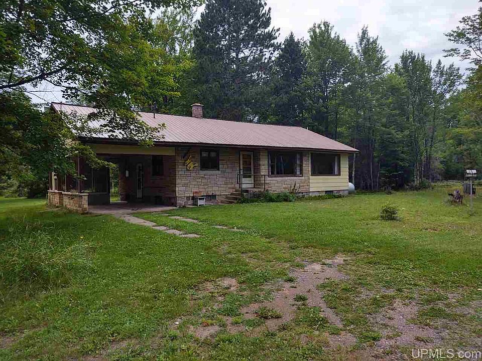 Great location and lots of room. This 3 bedroom home sits on 4 acres (36 more available) and has 2 large detached garages. An attached carport with screened in gazebo. The house has a large master bedroom with a private bath and patio door leading to a deck. The main floor also has another bedroom and a full bathroom. the detached buildings measure 33x24 and 25x30, all roofs are metal. The house is only 200 feet from the snowmobile/atv trail. (Property with all 40 acres $119,000).