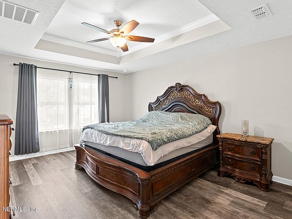 This exquisitely furnished residence can be found in the highly desirable Bartram neighborhood and the gated community of Flagler Station. This 1,838 square foot, three bedroom, two and a half bathroom home is welcomed by a two-story entry. Proceed to the open concept floor plan that is ideal for entertaining, featuring an expansive great room, roomy dining area, granite countertops, a kitchen with bespoke appliances, and an inside laundry. There is plenty of space for everyone to have their own space when you head upstairs to the newly luxurious vinyl flooring. There is a large primary bedroom with a stately ensuite, two nice-sized bedrooms, a second full bathroom, and a loft. Through the double door slider, walk out onto the screened lanai which further provides a private, fenced backyard with pavers which has plenty of space to spend with family and friends. 10 important upgrades Smart home all appliances and thermostats Luxury vinyl no carpet Fenced yard Pavers Screened in lani Granite in kitchen and all bathrooms Upgraded sprinkle system Newly painted exterior Newly painted interior Fans in all rooms and the lani Backsplash Custom lighting Luxury bespoke kitchen appliances Garden tub was an upgrade There is a security system 2 cameras one facing the lani the other the front door with comcast.