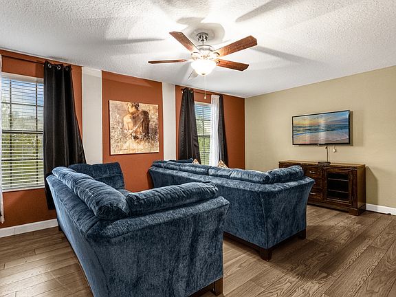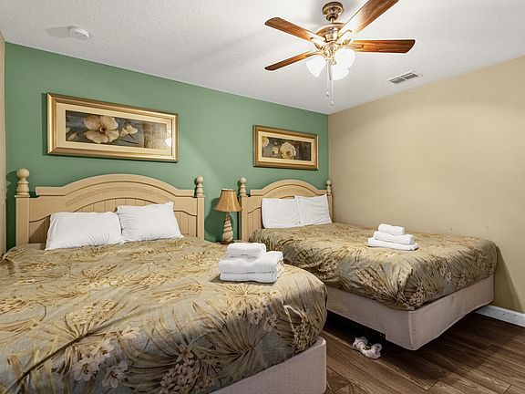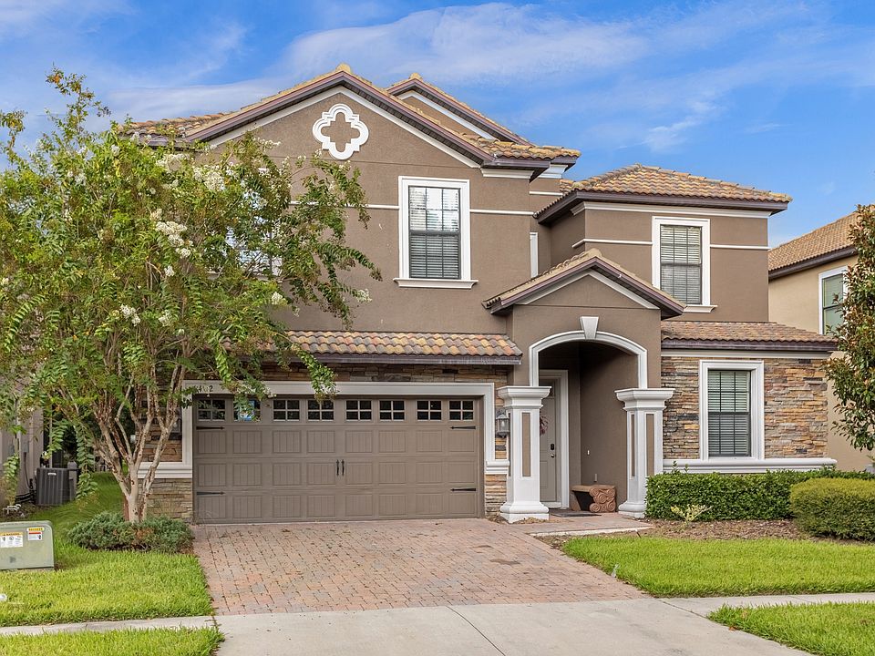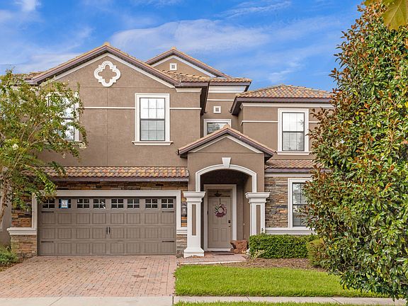 Now Available!! This is a beautiful, fully furnished Championsgate Resort property. Located just 20 minutes from Disney, and close to dining, shopping, and entertainment! This beautiful guard-gated community in Champions Gate boasts an open floor plan with plenty of natural light. Enjoy cooking up a meal in the open kitchen which features solid surface counters, stainless steel appliances, and solid wood cabinets. Complete with a breakfast bar for additional seating. Amongst the 8 bedrooms, two master bedrooms are located downstairs for easy accessibility and an upstairs to include the remaining 6 rooms, a game room, and a loft area. Relax under the covered lanai or take a swim in your private pool or spa. The tenant pays for all utilities plus the HOA fee The home comes furnished