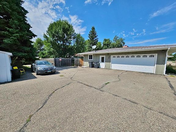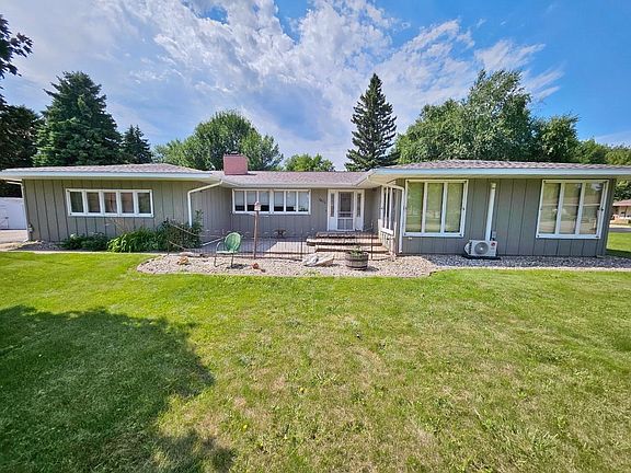 Convenient one level living on a spacious corner lot! When you enter the home, you will find a large entry with double closets and laundry room. The kitchen, dining, and living areas flow together in an open-concept design, providing plenty of space for both everyday living and entertaining. The dining room also features a sliding door to the backyard deck. The main living room is highlighted by a cozy wood-burning fireplace, while a second generously sized living room offers even more space to relax or gather. Both living rooms are filled with natural light thanks to an abundance of windows throughout the home. The main bathroom is good size and has a jacuzzi tub. There are 3 bedrooms with the master bedroom having a recently updated tiled 3/4 bath. Outside the home you will find a front concrete patio area, as well as a covered back patio inside your fenced in yard. The double stall garage is insulated, heated, and has tons of storage. There is plenty of space for additional parking as well as a spot for RV parking. There are also 2 sheds that come with the property, with one of them equipped with electricity. Other property features include: electric hot water heat, ductless A/C with a heat pump, and it is located 1 block from Rugby High School. Call today to schedule a showing!