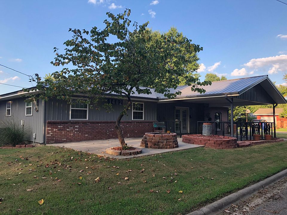 Updated unique rustic, sitting on large corner lot, 3 bedroom, 1 3/4bath, with new metal roof, windows, and C/H/A. With amazing covered front porch/patio.