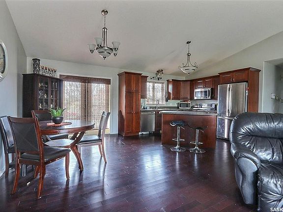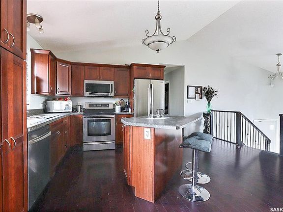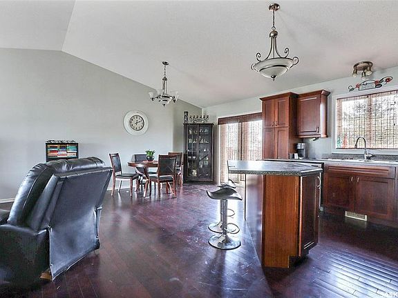 This spacious 1,245 sq/ft 5 bedroom bi-level, built in 2008, offers a fantastic layout and great potential. Located in East Flat across from St. John Community School and close to many amenities, this property makes for an ideal family home. The main floor features an open-concept design with vaulted ceilings, hardwood flooring, and a bright, spacious feel throughout. The kitchen offers plenty of dark cabinetry, an island with sink and bar seating, and patio doors leading to a large composite deck overlooking the fully fenced yard with a cozy fire pit area. There are 3 bedrooms and 2 bathrooms on the main level, including a primary suite with a walk-in closet and 3-piece ensuite. Downstairs, you’ll find a large rec room with plenty of windows, a den, and two additional bedrooms, plus a 4-piece bathroom — perfect for a growing family. Additional features include a 22x24 insulated double attached garage, arborite counters throughout, natural gas hot water heater (2022), central air, and an air-to-air exchanger. Set on a 54 x 130 lot, this home offers space and comfort - an excellent opportunity!