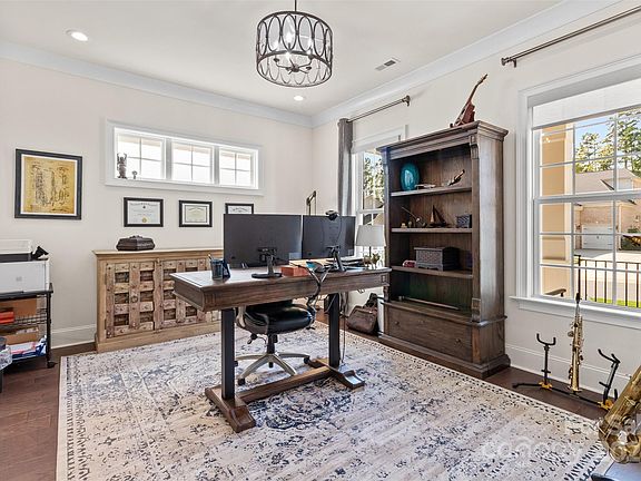 This like new home in The Falls at Weddington is everything you've been looking for and more. The main floor is equipped with 10' high ceilings, custom millwork throughout including not one but TWO full refrigerators and dishwashers and a beverage refrigerator. Enter through the double front door or from the garage to the mudroom and step into an open floor plan with an office, formal dining room and breakfast area that can fit a large dining table. The main level also includes a large guest bedroom with ensuite bathroom with a walk-in shower. The kitchen has a large island, pantry, and secondary kitchen area perfect for entertaining! Step outside through the massive sliding glass doors to the deck and enjoy the wooded back yard view. The primary suite feels just like having your own spa experience every day! Come see this amazing newer built home that checks all of your boxes!