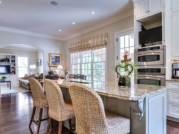 Classic home built in 2007 blocks from Greensboro CC and Johnson Park. High ceilings, archways, and custom quality throughout. Open kitchen with stainless steel appliances, desk, and island beside wet bar with ice machine and wine fridge. Rare 5 BRs with large upstairs laundry room. Great 3rd floor bonus room with bathroom. Covered outdoor area plus fire pit on brick patio. Gorgeous home!