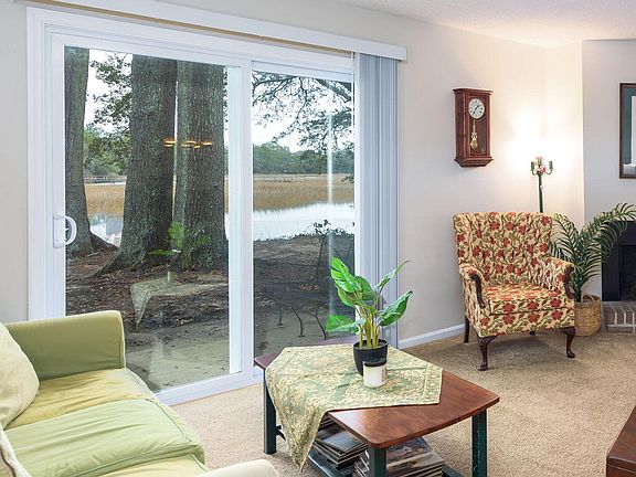 Enjoy priceless marsh views from this ground-floor 1-bedroom, 1-bathroom condo! The open-concept layout features a spacious family room with a cozy fireplace, separate dining room, fully-equipped kitchen, and laundry/utility room. Amenities include a clubhouse with fitness center, swimming pool, and tennis courts. The location is unbeatable: Folly Beach is 6 miles away; downtown Charleston is 5 miles away via the scenic James Island Expressway; and Folly Road offers a wide variety of shopping, restaurants, and other activities. Monthly regime fee covers water, sewer, trash, termite bond, and building insurance. Don't miss your chance to own this amazing view, right outside your door!