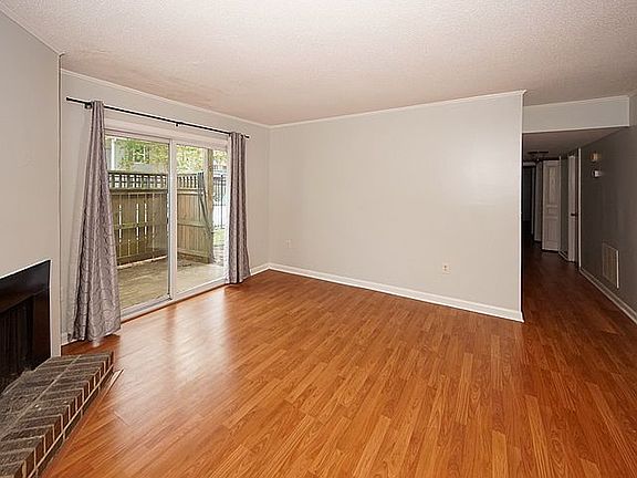 This first floor unit features wood floors, a wood-burning fireplace, a private patio, spacious galley-style kitchen with a smooth topped stove, a separate laundry room with tons of storage, three bedrooms, two full bathrooms, and it backs up to the pool. Ready for move-in and such a great location!