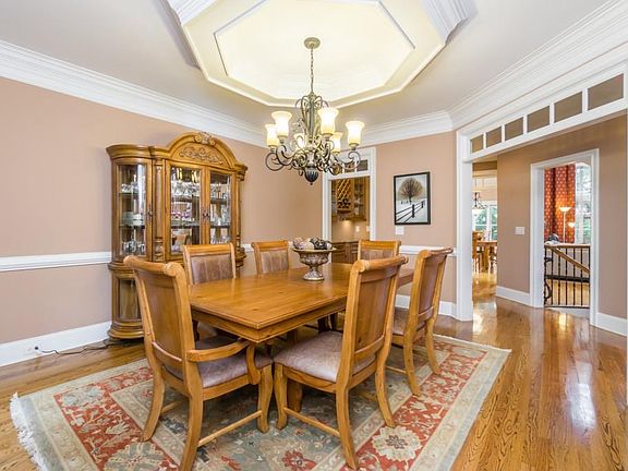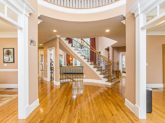 Gracious Home Perfect for Entertaining w/Inviting Front Porch. 2 Story Entryway, Lg. 2 Story FR w/FP, Custom Built-Ins & Wall of Windows, Lg. DR/Office w/Coffered Ceiling, Spacious LR & Guest Suite. Hdwd Floors thruout. Chef's Kit w/SS Appliances, Breakfast Bar & Planning Desk. Oversized Master w/FP, Custom Walk-In Closet, Luxurious Ensuite & Sitting/Nursery/Exercise Room w/Wet Bar. 3 Spacious BR Up. Full Finished Terrace Level w/Family Rm, Play Rm, Large Theatre & Game Rm stubbed for Bar. Covered Porch overlooking BY w/Sparkling Pool & Waterfall. Move Right In!