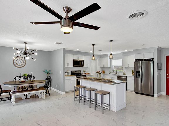 - Interior Features: Living/Dining Combo, Open Floor Plan, Window Treatments, Breakfast Bar, Ceiling Fan(s), Laundry in Garage