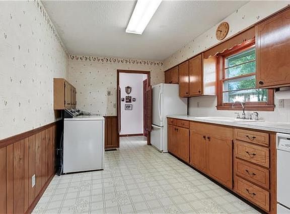 Don't miss this special opportunity to own a well-maintained 3 BED/1.1 BA ranch on a corner lot. Brick front with sturdy metal siding. TWO large living areas allow plenty of space for the whole family! Enjoy the convenience of laundry on main floor OR in basement. Gleaming hardwood floors under carpet. LOTS of storage and potential in HUGE unfinished basement area. Minutes from KS-10 Hwy but no traffic noise. Mature treed corner lot with landscaping. Great bones! Bring your cosmetic improvements! THIS HOME IS BEING SOLD AS-IS. EXCELLENT COSMETIC FIXER UPPER AND/OR INVESTMENT OPPORTUNITY. Basement has direct walk-up access to exterior of home. New Lennox A/C.