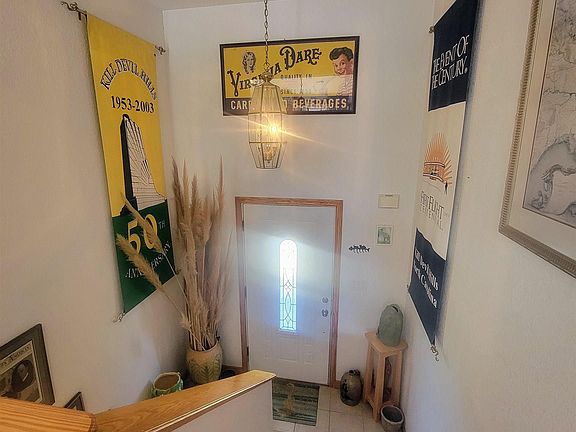Welcome to this enchanting beach home nestled on an expansive 11,500 square foot lot, graced by a unique and magnificent live oak tree! Step into a grand entry with soaring ceilings, and spacious living with 4 generously-sized bedrooms and 3 full bathrooms. On the 2nd floor, you will find a open floor plan with a den, dining room, spacious kitchen with granite floors, a master suite with ensuite bath and walk-in-closet, a 2nd bedroom with a walk-in-closet, and a 2nd full bath. The 1st floor is completely renovated with a dry entry, and offers 2 full bedrooms, a full bath with custom tiled shower, and laundry area. Around the corner is a workshop/ fishing room. The backyard is massive, waiting for a pool oasis, featuring a large brick patio perfect for evening gatherings at the beach. A storage shed provides convenient space for all your tools, equipment, and recreational beach gear. Recent renovations include New Roof in 2019, HVAC Systems in 2018, & marble flooring in the kitchen. Walking distance to Nags Head Woods Nature Preserve, Wright Brothers memorial, restaurants, schools, & most importantly to the Atlantic Ocean!