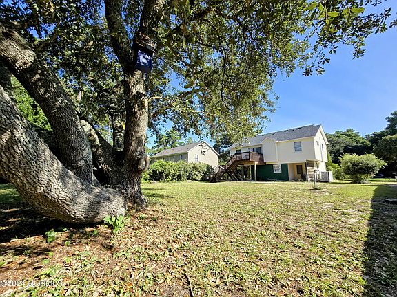 Welcome to this enchanting beach home nestled on an expansive 11,500 square foot lot, graced by a unique and magnificent live oak tree! Step into a grand entry with soaring ceilings, and spacious living with 4 generously-sized bedrooms and 3 full bathrooms. On the 2nd floor, you will find a open floor plan with a den, dining room, spacious kitchen with granite floors, a master suite with ensuite bath and walk-in-closet, a 2nd bedroom with a walk-in-closet, and a 2nd full bath. The 1st floor is completely renovated with a dry entry, and offers 2 full bedrooms, a full bath with custom tiled shower, and laundry area. Around the corner is a workshop/ fishing room. The backyard is massive, waiting for a pool oasis, featuring a large brick patio perfect for evening gatherings at the beach. A storage shed provides convenient space for all your tools, equipment, and recreational beach gear. Recent renovations include New Roof in 2019, HVAC Systems in 2018, & marble flooring in the kitchen. Walking distance to Nags Head Woods Nature Preserve, Wright Brothers memorial, restaurants, schools, & most importantly to the Atlantic Ocean!