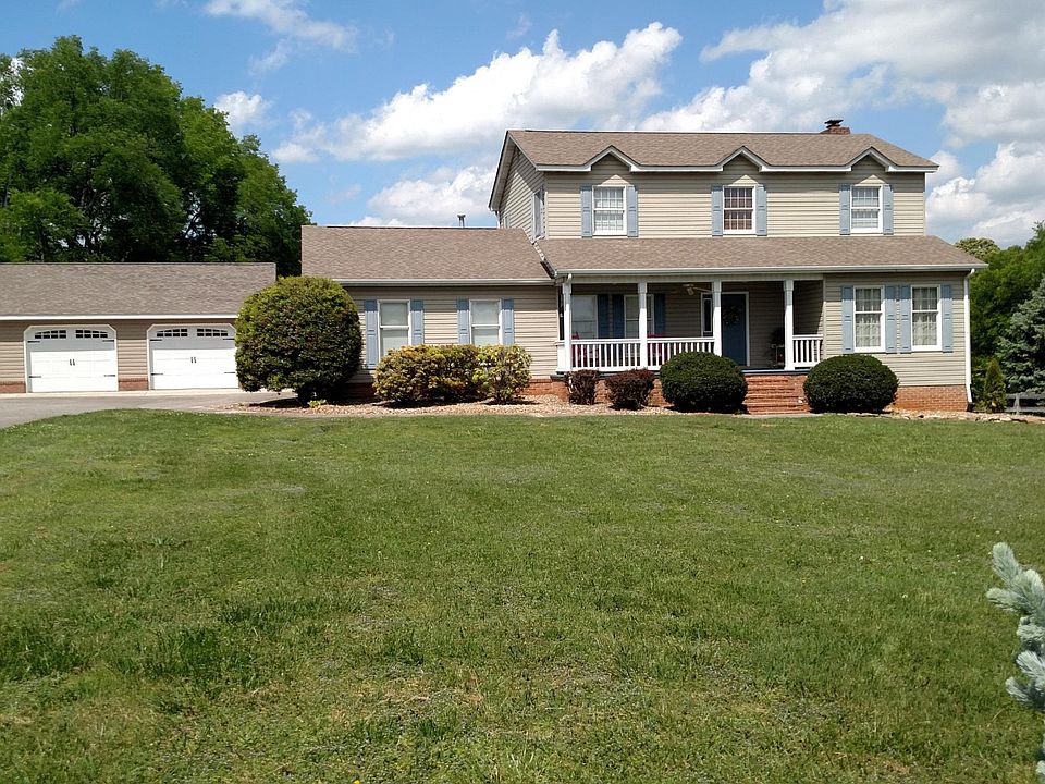 Gorgeous farmhouse situated on 3.11 acres with beautiful mountain views! This home features 5 bedrooms with 2 master bedrooms one on main level, 3 full baths, 1 half bath. Large dining room with a wood burning fireplace, updated kitchen with stainless appliances, farmhouse sink & granite counter tops, huge master suite with walk-in closet Relax and enjoy coming home to a beautiful mountain view from the large sunroom, this home also has a four car garage.